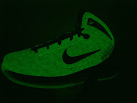 In the following pictures I have used to illustrate this shoe, I have had to adjust the saturation in the "dark" pictures. Pictures taken in the dark are hard to do. These shoe glow very well, especially to the naked eye, but they were hard to capture on film. If you have these shoes, you can also attest to this.